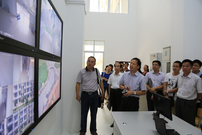 当天上午,莫书记、梁副书记与教代会代表在校园里细致走访了教学楼、食 堂、学生宿舍、绿化区域等。在五合校区保卫室,保卫处负责人向巡视组介绍了五合校区的监控系统,大家听完介绍后对五合校区电子化的安保工作表示称赞,对打造“智慧校园”充满信心和期待。随后,代表们兴致勃勃地查看了花圃、教学区绿化带等多个休闲场地,五合新校区日新月异的新气象也感染了巡视组各位成员,一路上大家不时交流着对新校区的美好愿景。
